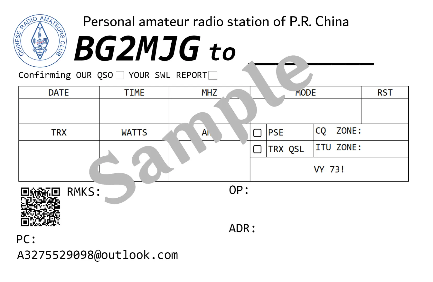 - CONFIRMING OUR QSO 我们通联了